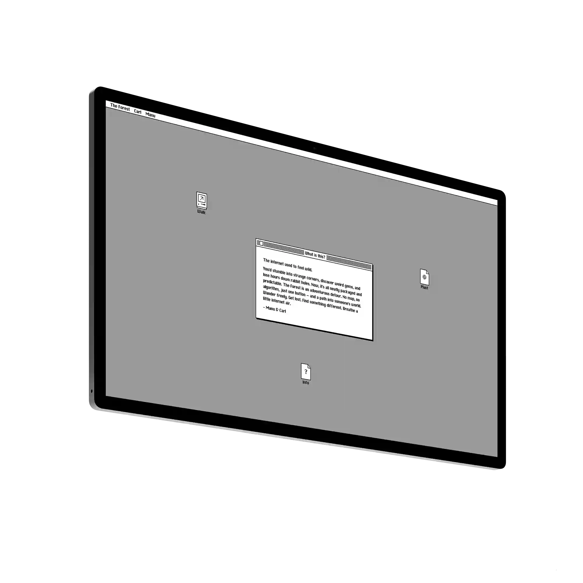 A web experiment that revives the feeling of the early internet—unpredictable, exploratory, and human. Built as a single-button experience, it connects visitors to personal websites at random, encouraging curiosity and discovery beyond algorithms.