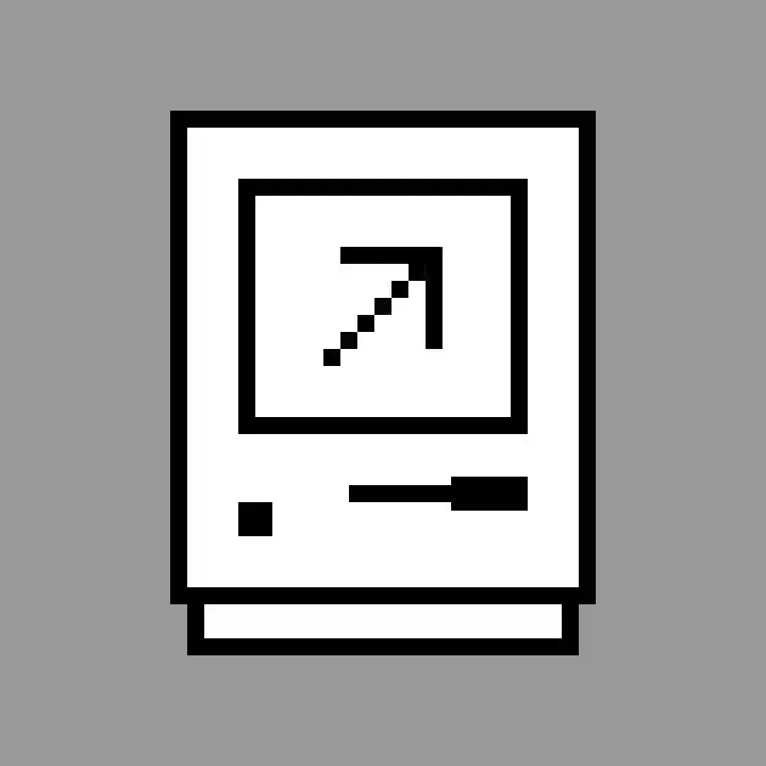 The design draws inspiration from the classic System 6 Mac OS and the Macintosh Plus, reinterpreted through bespoke iconography.